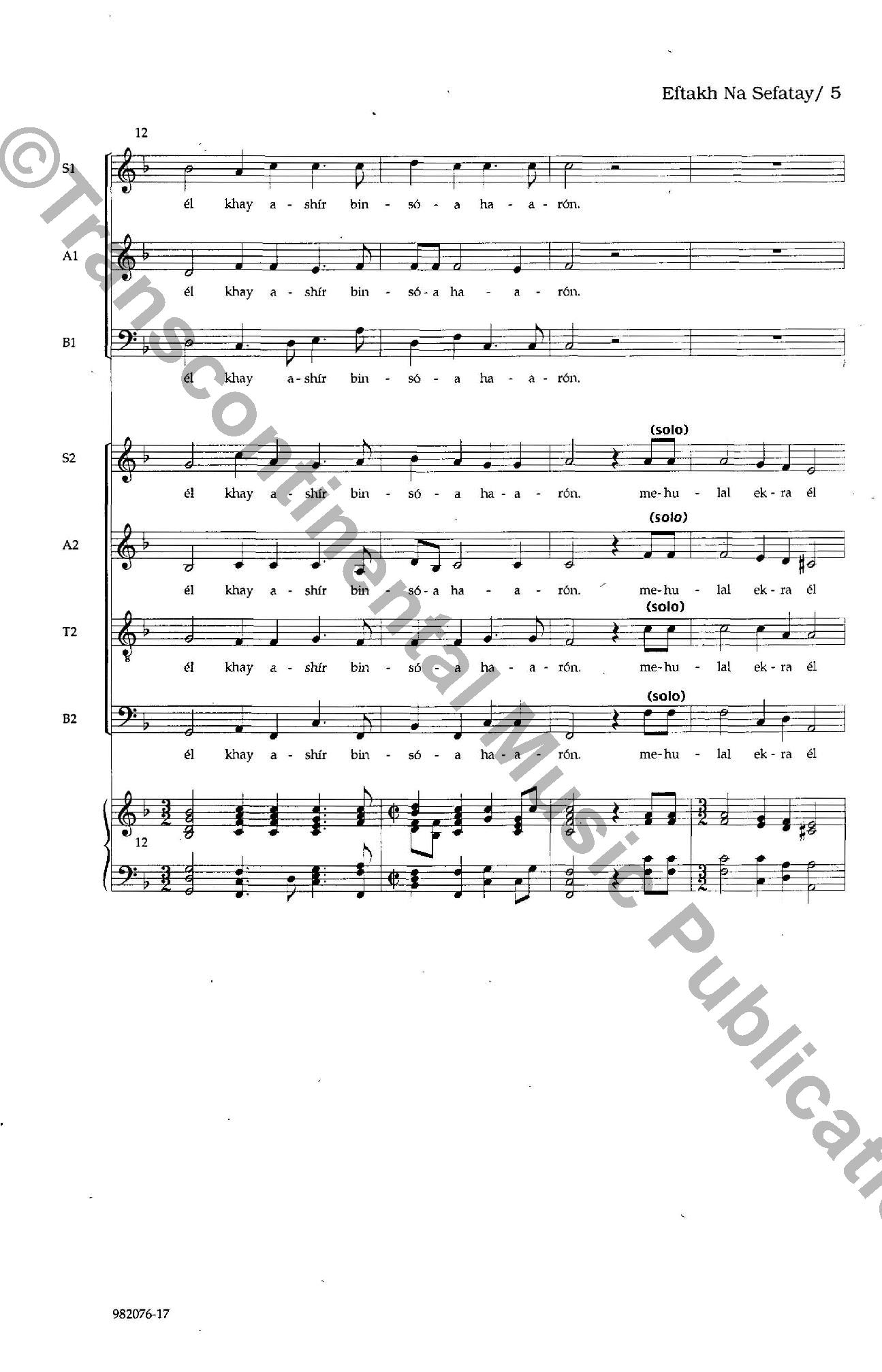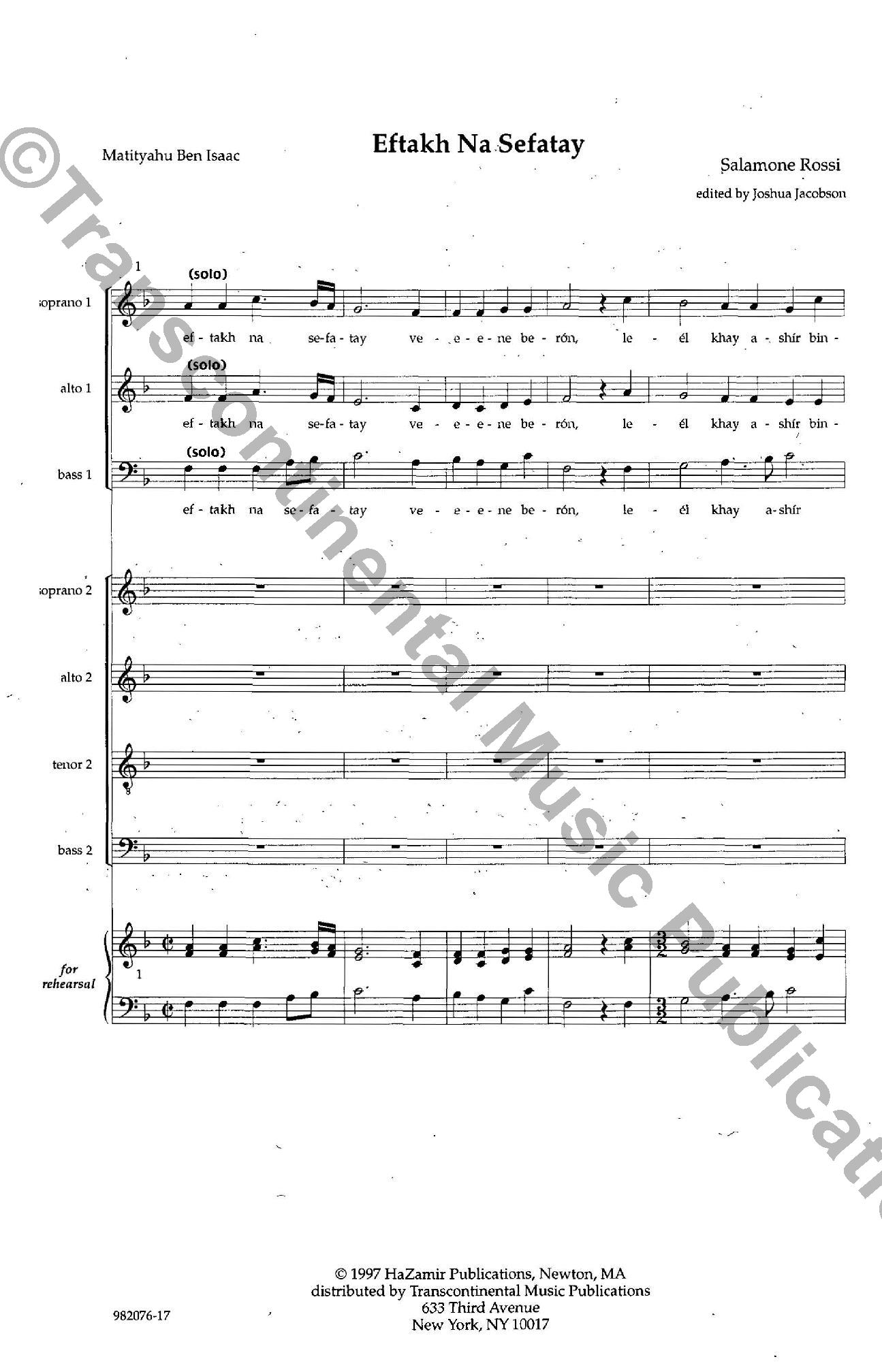 by Salamone Rossi, Edited by Joshua Jacobson