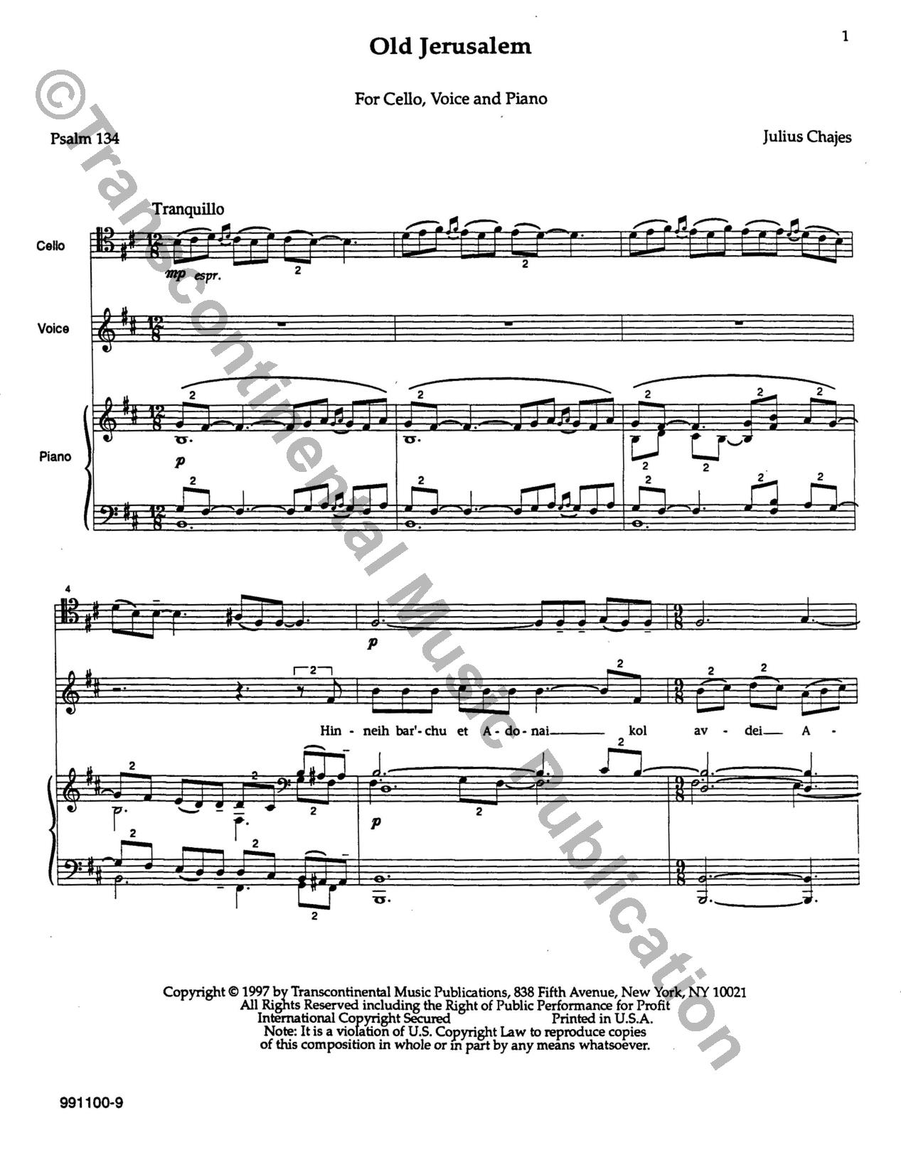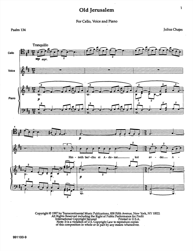 Solo Voice, Cello, and Piano