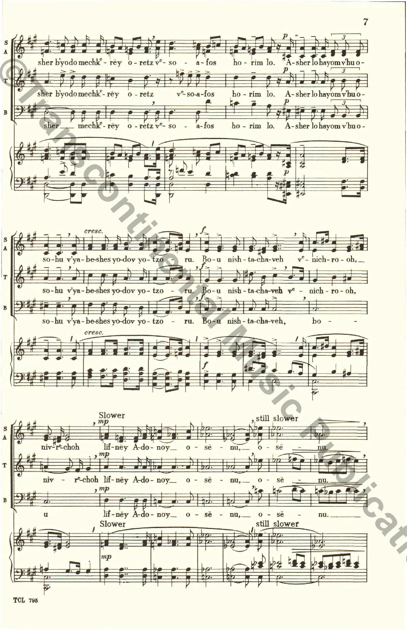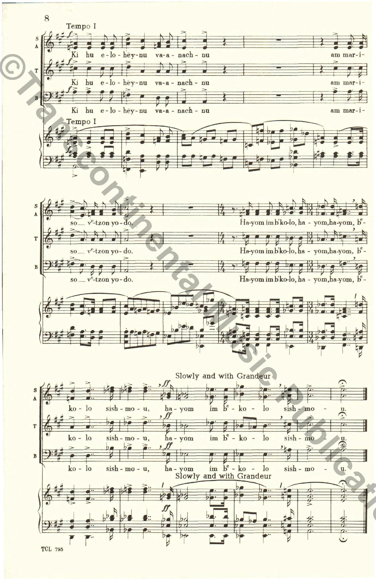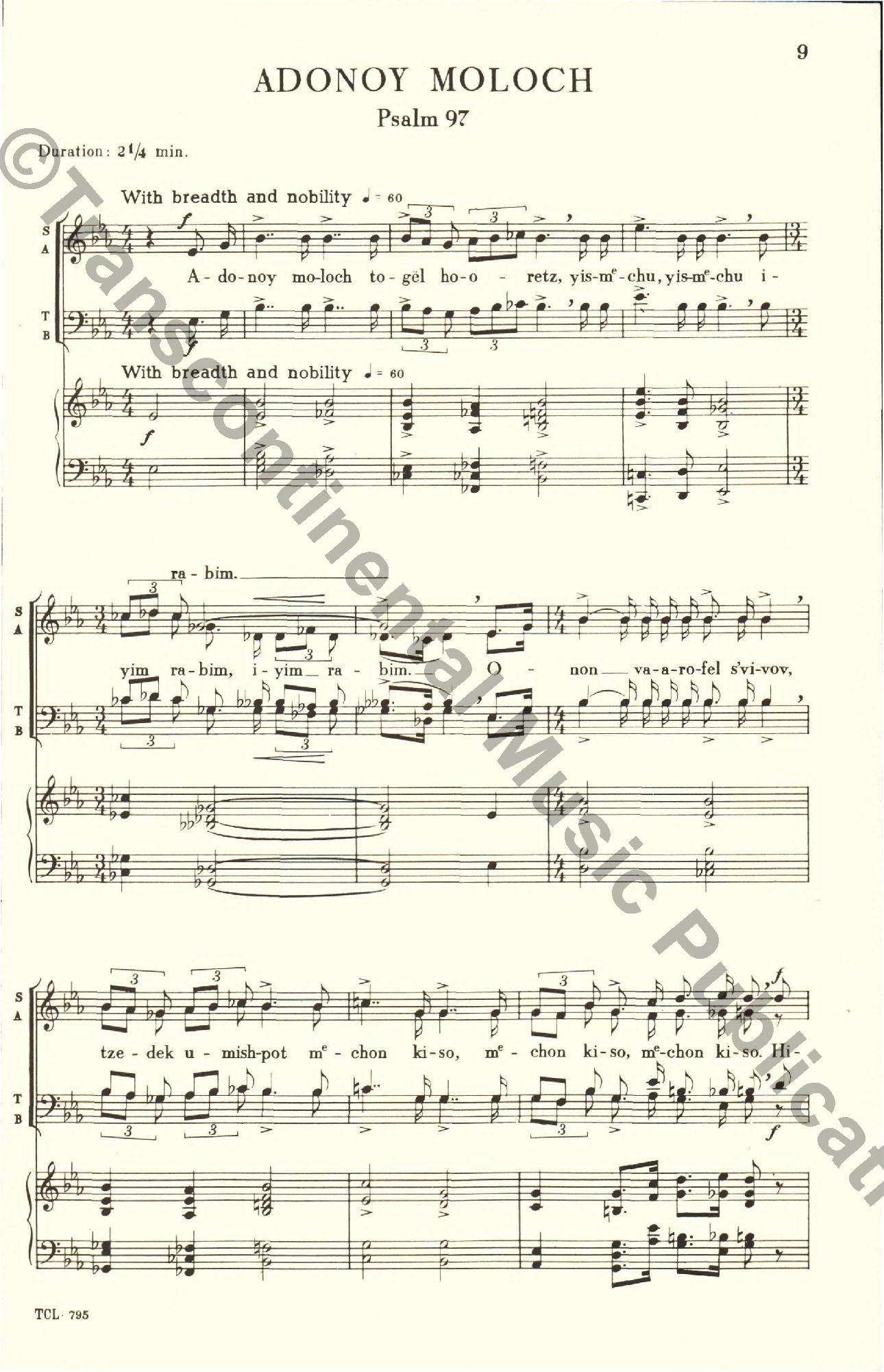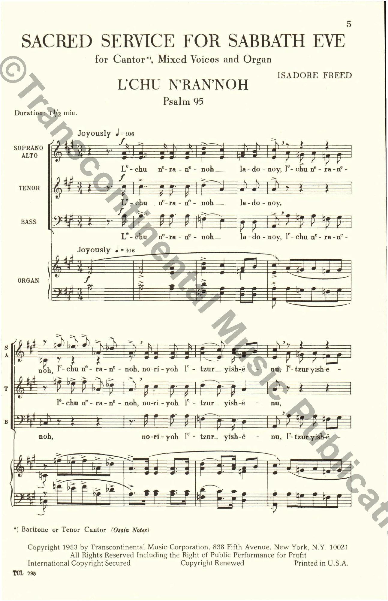 L'chu N'ran'noh, Adonoy Moloch, Shiru Ladonoy, L'cho Dodi, Tov l'hodos, Bor'chu 1 & 2, El Chai V'kayom, V'ahavos'cho, Sh'ma Yisroel, V'ohavto, Silent Prayer, Mi Chomocho, Yism'chu, Hashkeinu, V'shomru, Reader's Kaddish, M'chalkel Chayim, Silent Devotion, May the Words 1 & 2, Kiddush, Va'anachnu, On That Day, Mourner's Kaddish, Yigdal, Benediction