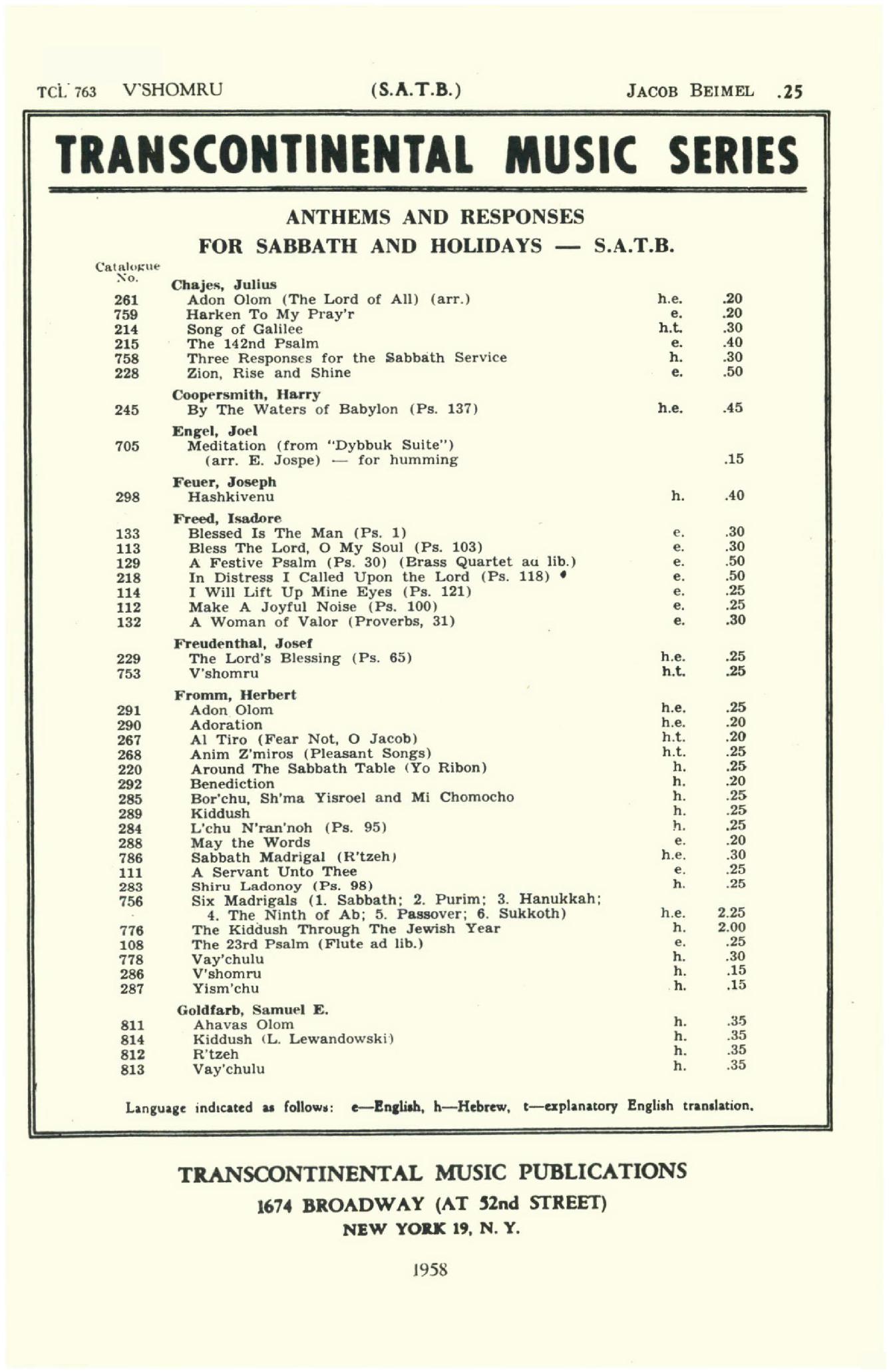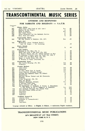 Jacob Beimel was a composer of tremendous skill and depth and has contributed many wonderful pieces to our repertoire. This piece is an example of it, and will be a great piece for your adult volunteer choir!