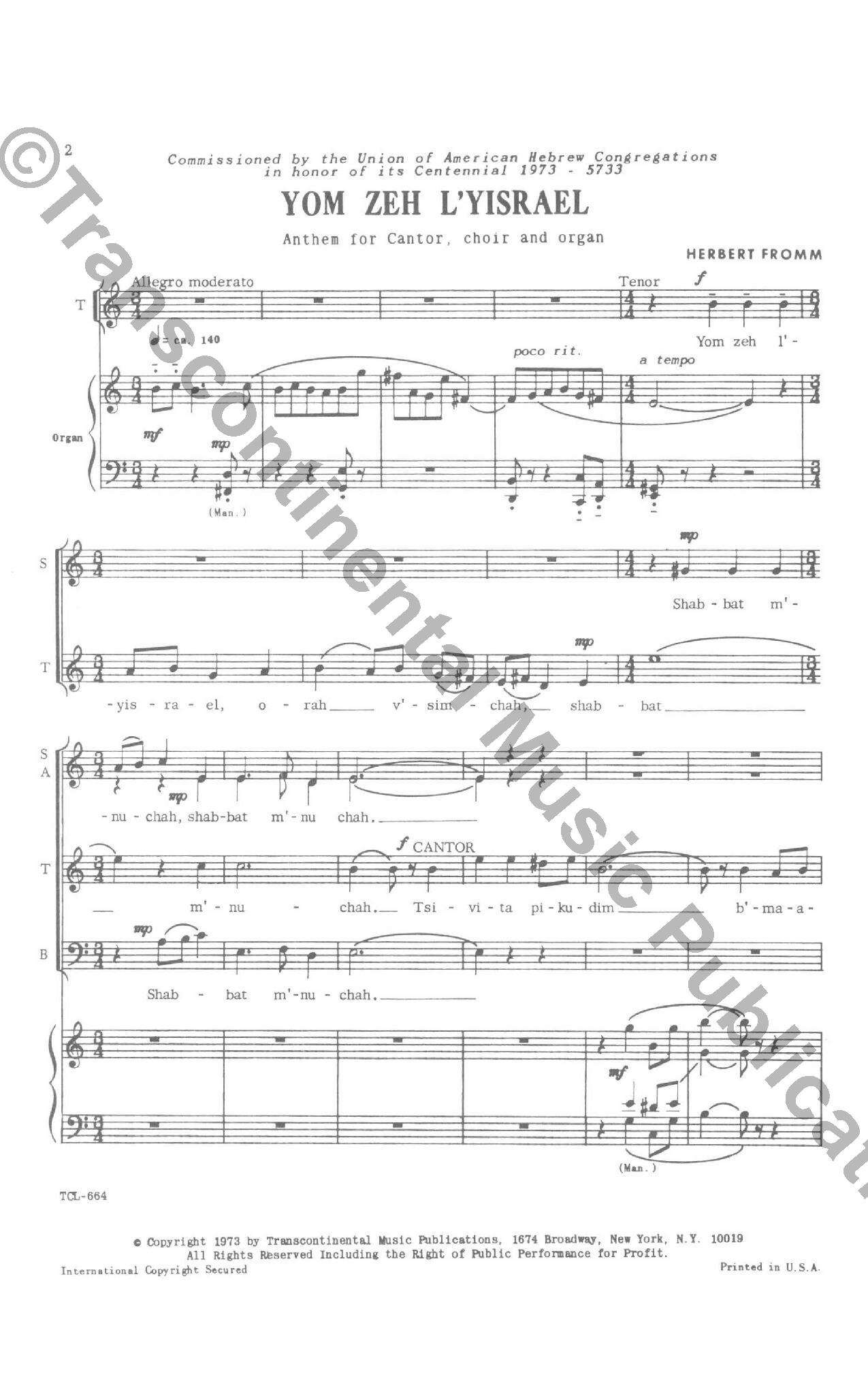 The Leading Publisher of Jewish Music Since 1938