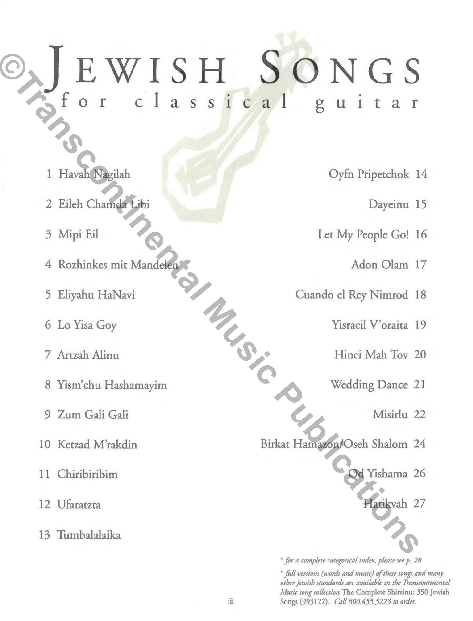 Jewish Songs for Classical Guitar Contents